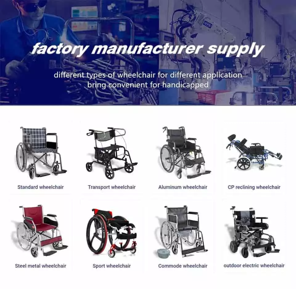 आपूर्ति उत्पाद OEM और ODM, जैसे हमें Sटील व्हीलचेयर, एल्यूमिनियम व्हीलचेयर, पीओवर व्हीलचेयर,डब्ल्यूअल्कर, सीरच, वॉकर रोलर्स, Cओम्मोड कुर्सी, शावर कुर्सी,अस्पताल का बिस्तर, स्कूटर, रोबोट और अन्य मेड टेक पुनर्वास उपकरण,