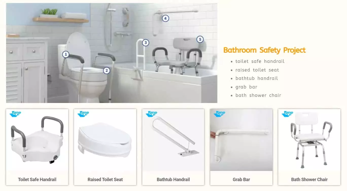 और3 मिलियनबाथरूम कुर्सियों और आर्मरेस्ट के सेट।